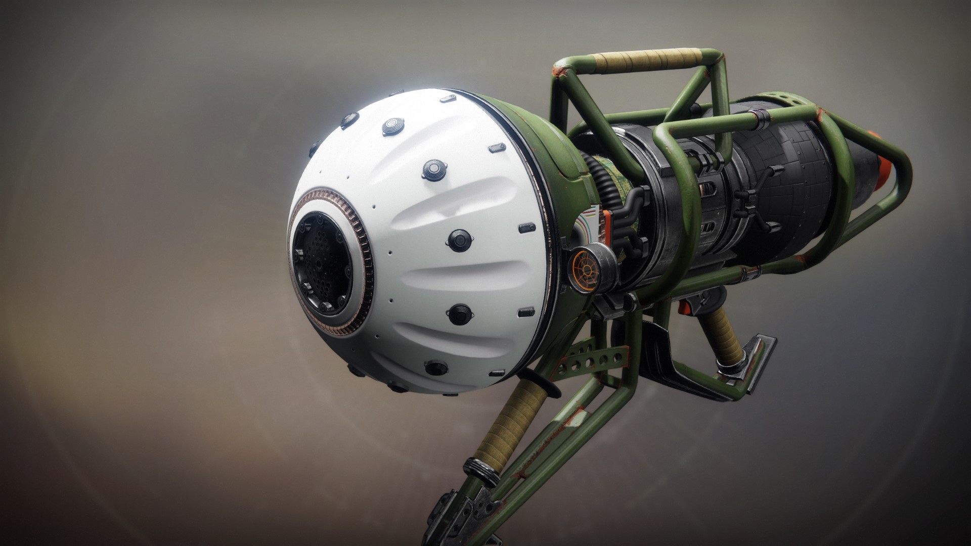 This image is a screenshot of a weapon from the Destiny series of first-person shooter video games developed by Bungie Studios and published by Bungie or Activision. It falls under the screenshot category for a copyrighted computer game or video game, and the copyright for it is most likely held by the company that developed the game. It is believed that the use of a limited number of web-resolution screenshots: