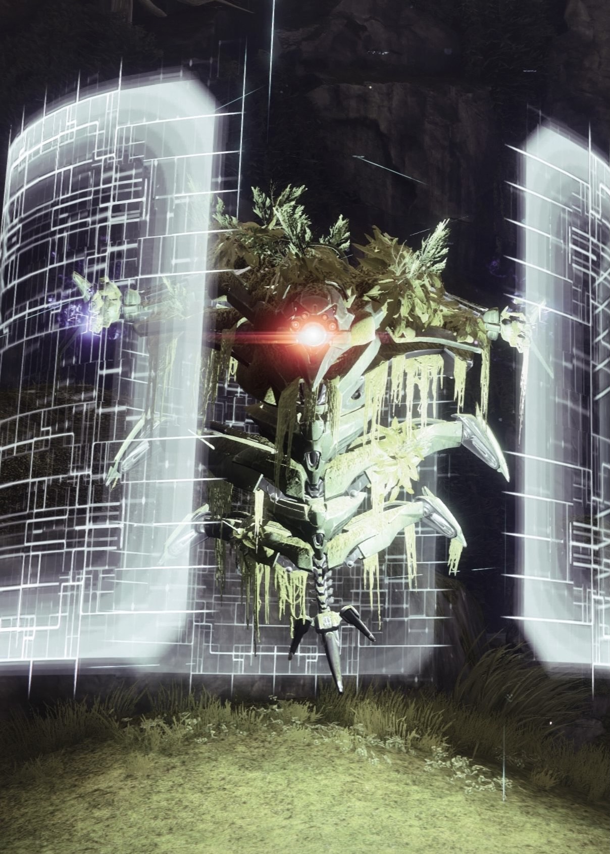 This image is a screenshot of a character or AI unit from the Destiny series of first-person shooter video games developed by Bungie Studios and published by Bungie or Activision. It falls under the screenshot category for a copyrighted computer game or video game, and the copyright for it is most likely held by the company that developed the game. It is believed that the use of a limited number of web-resolution screenshots:
