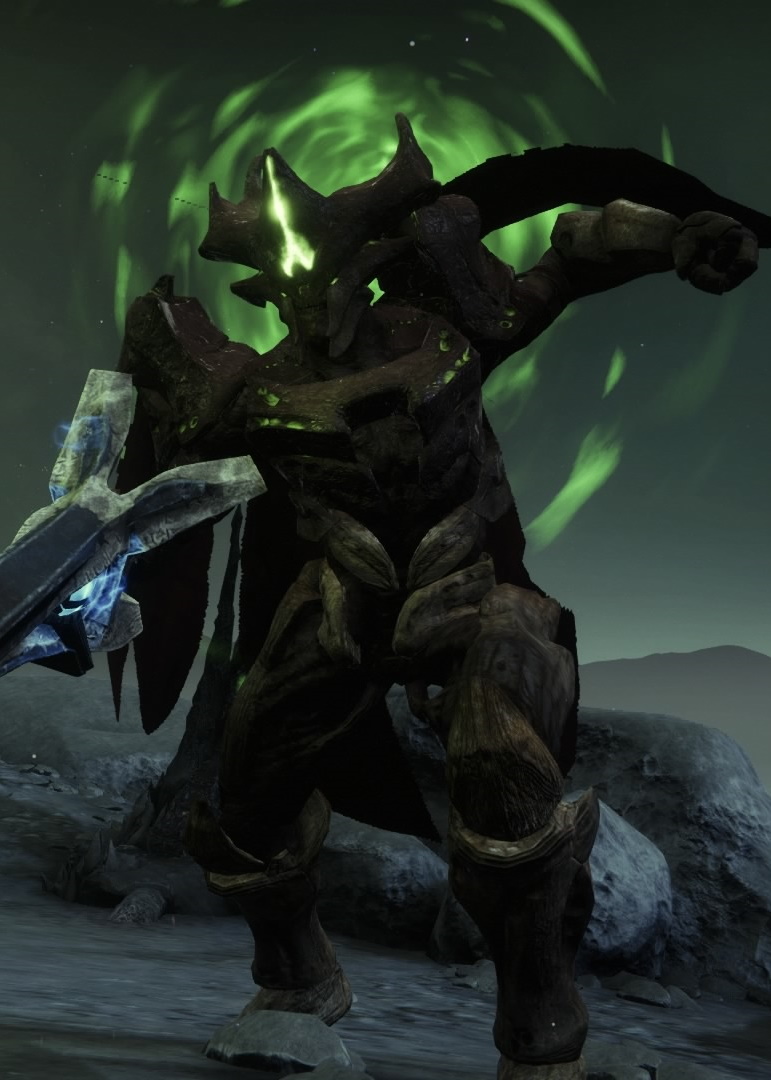 This image is a screenshot of a character or AI unit from the Destiny series of first-person shooter video games developed by Bungie Studios and published by Bungie or Activision. It falls under the screenshot category for a copyrighted computer game or video game, and the copyright for it is most likely held by the company that developed the game. It is believed that the use of a limited number of web-resolution screenshots: