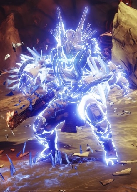 This image is a screenshot of a character or AI unit from the Destiny series of first-person shooter video games developed by Bungie Studios and published by Bungie or Activision. It falls under the screenshot category for a copyrighted computer game or video game, and the copyright for it is most likely held by the company that developed the game. It is believed that the use of a limited number of web-resolution screenshots: