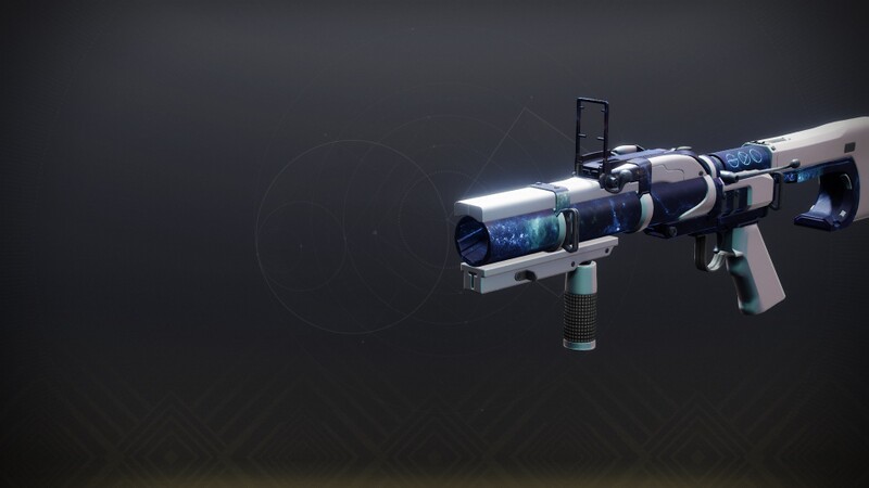 This image is a screenshot of a weapon from the Destiny series of first-person shooter video games developed by Bungie Studios and published by Bungie or Activision. It falls under the screenshot category for a copyrighted computer game or video game, and the copyright for it is most likely held by the company that developed the game. It is believed that the use of a limited number of web-resolution screenshots: