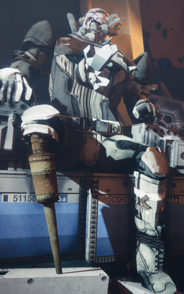This image is a screenshot of a character or AI unit from the Destiny series of first-person shooter video games developed by Bungie Studios and published by Bungie or Activision. It falls under the screenshot category for a copyrighted computer game or video game, and the copyright for it is most likely held by the company that developed the game. It is believed that the use of a limited number of web-resolution screenshots: