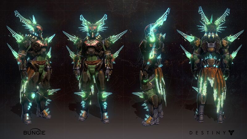 This image is a screenshot of armor from the Destiny series of first-person shooter video games developed by Bungie Studios and published by Bungie or Activision. It falls under the screenshot category for a copyrighted computer game or video game, and the copyright for it is most likely held by the company that developed the game. It is believed that the use of a limited number of web-resolution screenshots: