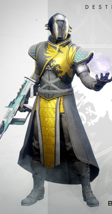 This image is a screenshot of a character or AI unit from the Destiny series of first-person shooter video games developed by Bungie Studios and published by Bungie or Activision. It falls under the screenshot category for a copyrighted computer game or video game, and the copyright for it is most likely held by the company that developed the game. It is believed that the use of a limited number of web-resolution screenshots: