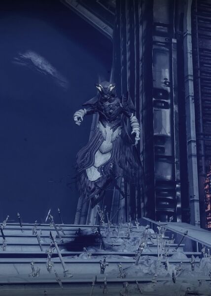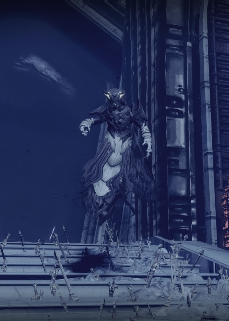 This image is a screenshot of a character or AI unit from the Destiny series of first-person shooter video games developed by Bungie Studios and published by Bungie or Activision. It falls under the screenshot category for a copyrighted computer game or video game, and the copyright for it is most likely held by the company that developed the game. It is believed that the use of a limited number of web-resolution screenshots: