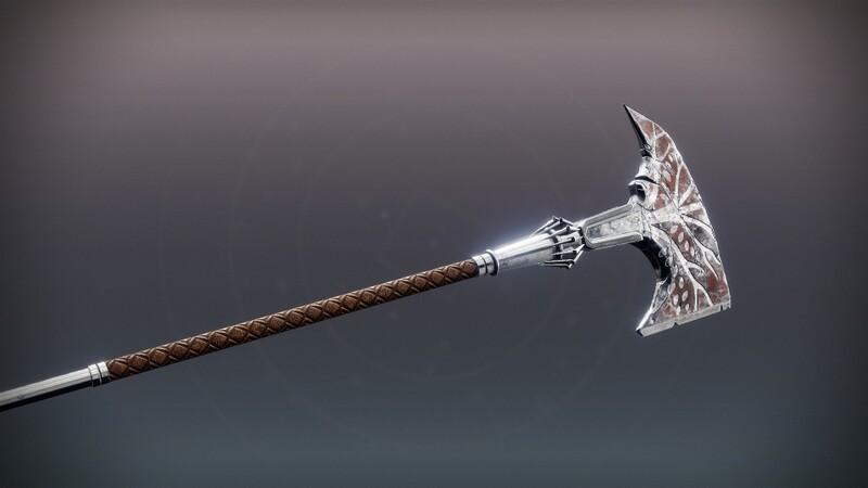 This image is a screenshot of a weapon from the Destiny series of first-person shooter video games developed by Bungie Studios and published by Bungie or Activision. It falls under the screenshot category for a copyrighted computer game or video game, and the copyright for it is most likely held by the company that developed the game. It is believed that the use of a limited number of web-resolution screenshots: