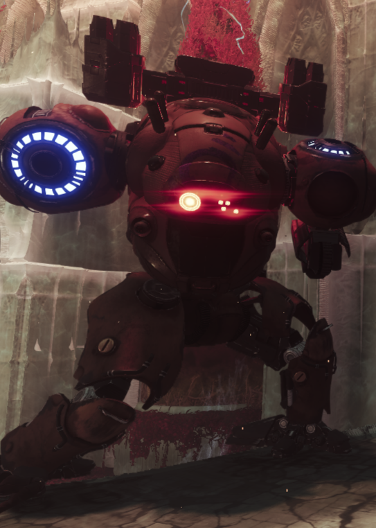 This image is a screenshot of a character or AI unit from the Destiny series of first-person shooter video games developed by Bungie Studios and published by Bungie or Activision. It falls under the screenshot category for a copyrighted computer game or video game, and the copyright for it is most likely held by the company that developed the game. It is believed that the use of a limited number of web-resolution screenshots:
