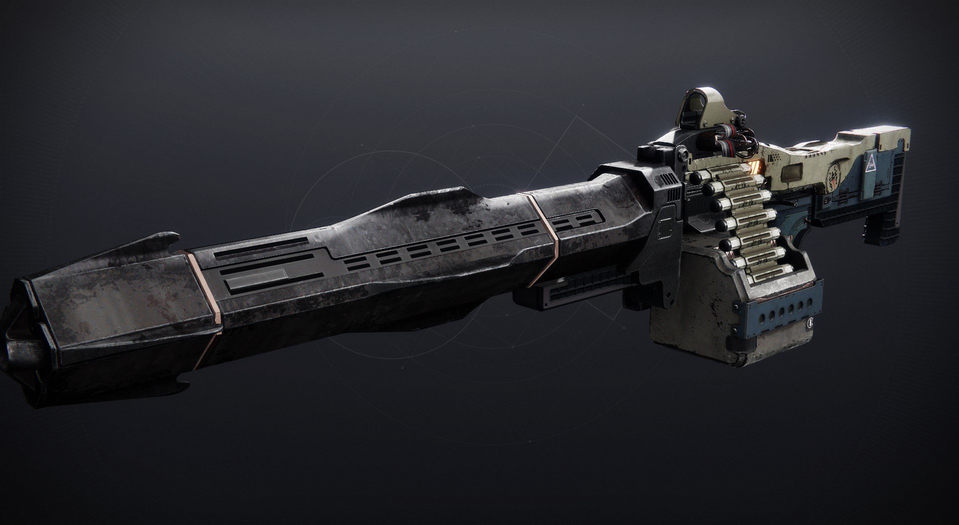 This image is a screenshot of a weapon from the Destiny series of first-person shooter video games developed by Bungie Studios and published by Bungie or Activision. It falls under the screenshot category for a copyrighted computer game or video game, and the copyright for it is most likely held by the company that developed the game. It is believed that the use of a limited number of web-resolution screenshots: