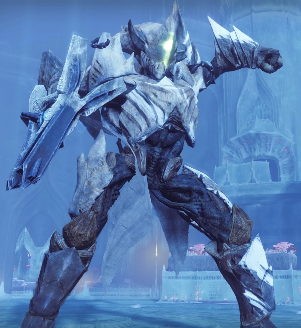 This image is a screenshot of a character or AI unit from the Destiny series of first-person shooter video games developed by Bungie Studios and published by Bungie or Activision. It falls under the screenshot category for a copyrighted computer game or video game, and the copyright for it is most likely held by the company that developed the game. It is believed that the use of a limited number of web-resolution screenshots: