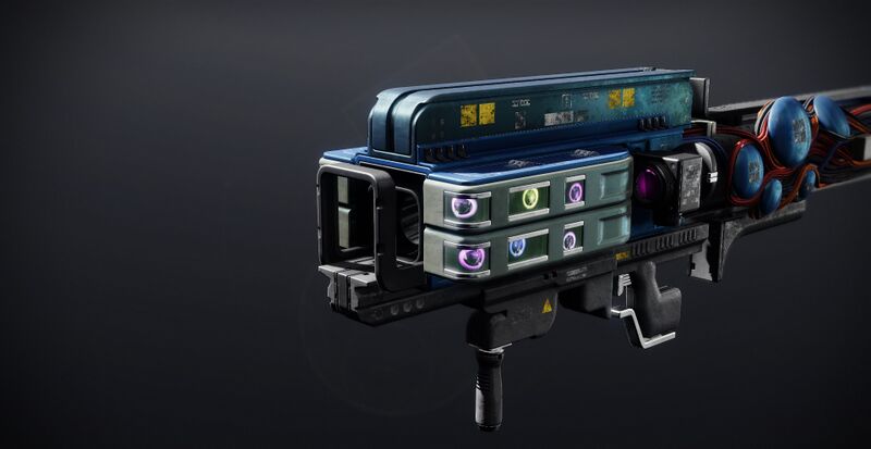 This image is a screenshot of a weapon from the Destiny series of first-person shooter video games developed by Bungie Studios and published by Bungie or Activision. It falls under the screenshot category for a copyrighted computer game or video game, and the copyright for it is most likely held by the company that developed the game. It is believed that the use of a limited number of web-resolution screenshots: