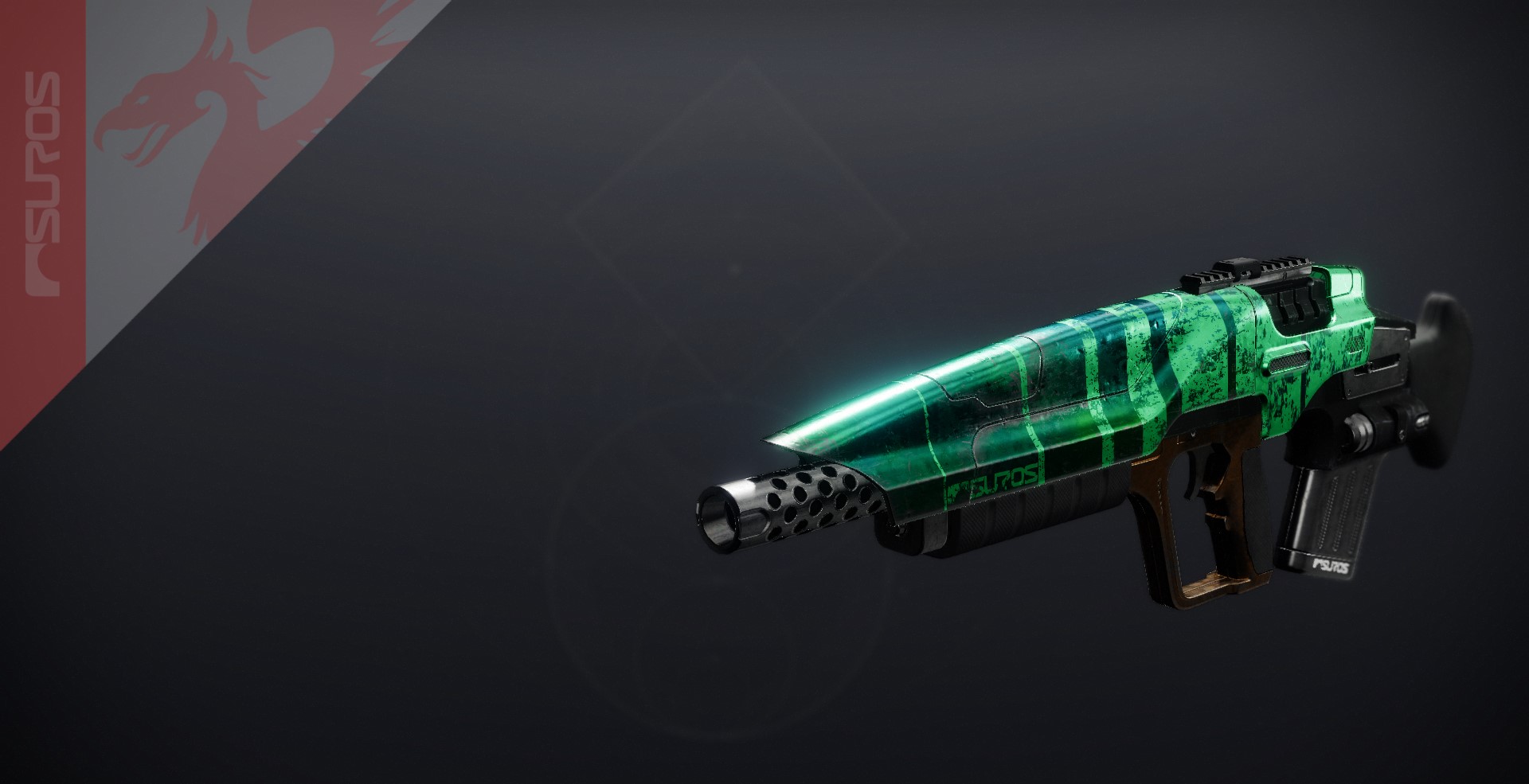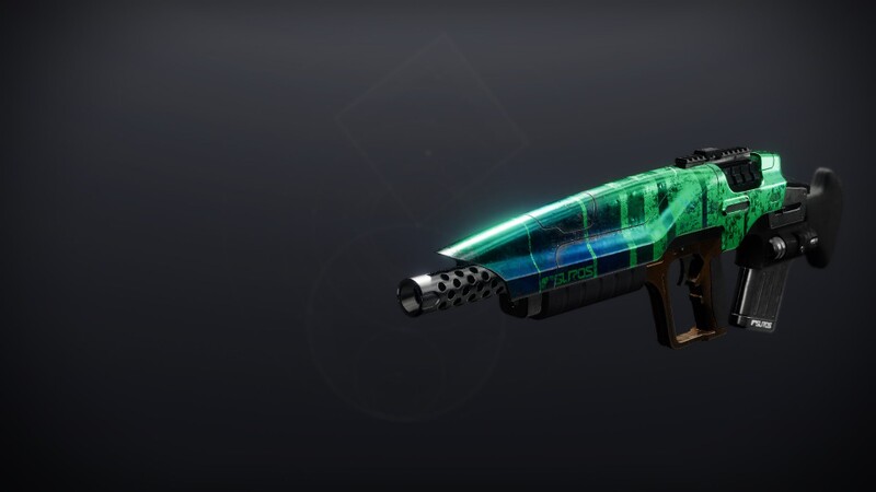 This image is a screenshot of a weapon from the Destiny series of first-person shooter video games developed by Bungie Studios and published by Bungie or Activision. It falls under the screenshot category for a copyrighted computer game or video game, and the copyright for it is most likely held by the company that developed the game. It is believed that the use of a limited number of web-resolution screenshots: