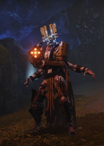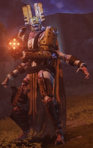 This image is a screenshot of a character or AI unit from the Destiny series of first-person shooter video games developed by Bungie Studios and published by Bungie or Activision. It falls under the screenshot category for a copyrighted computer game or video game, and the copyright for it is most likely held by the company that developed the game. It is believed that the use of a limited number of web-resolution screenshots: