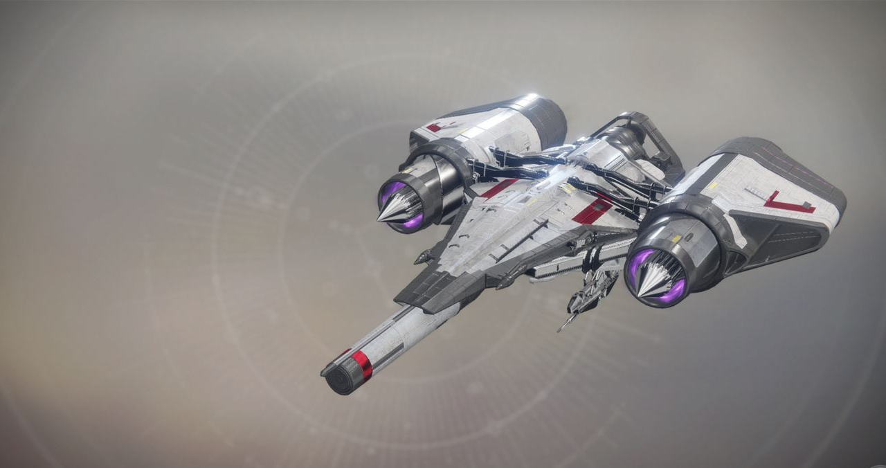This image is a screenshot of a vehicle from the Destiny series of first-person shooter video games developed by Bungie Studios and published by Bungie or Activision. It falls under the screenshot category for a copyrighted computer game or video game, and the copyright for it is most likely held by the company that developed the game. It is believed that the use of a limited number of web-resolution screenshots: